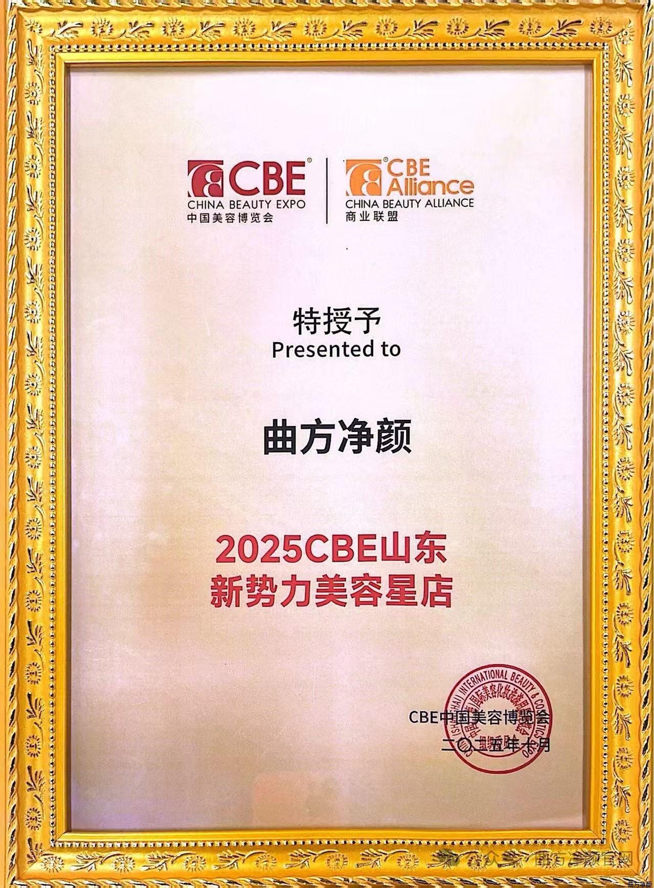 曲方净颜荣膺中国美容博览会——2025山东新势力美容星店!